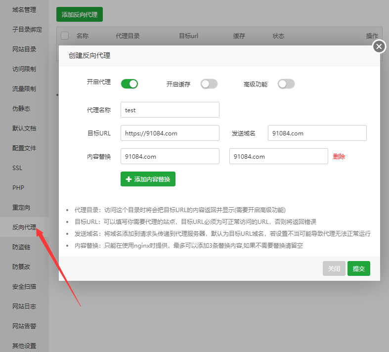 4、保存后,反向代理就完成了,使用新域名看結果吧。#PROXY-START/