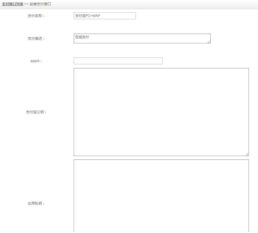 2、后臺-支付接口設置里面填寫appid和支付寶公鑰和應用私鑰