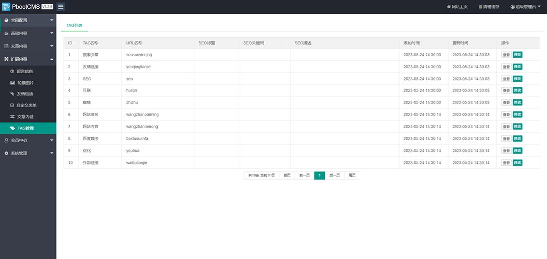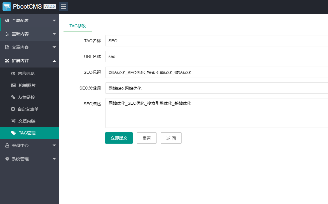 pbootcms程序TAG標簽管理插件支持自定義URL和SEO