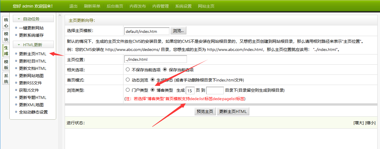 安裝完成后-首頁模板添加下面的數據列表標簽和分頁標簽-更新系統緩存-生成首頁
