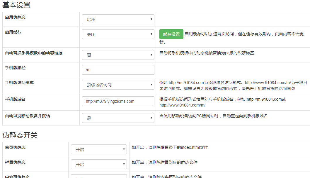 4、支持單獨開啟或關(guān)閉首頁、欄目頁、內(nèi)容頁、搜索頁、TAG標簽頁的偽靜態(tài)
