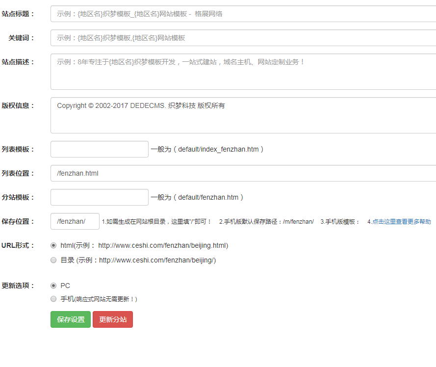 2、安裝方便快捷,本插件上傳XML模塊安裝后,設置分站的TDK后,指定好分站模板即可一鍵更新生成分站。