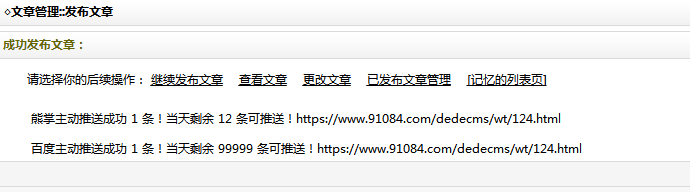 至此,織夢發布文檔主動推送到熊掌功能完成。