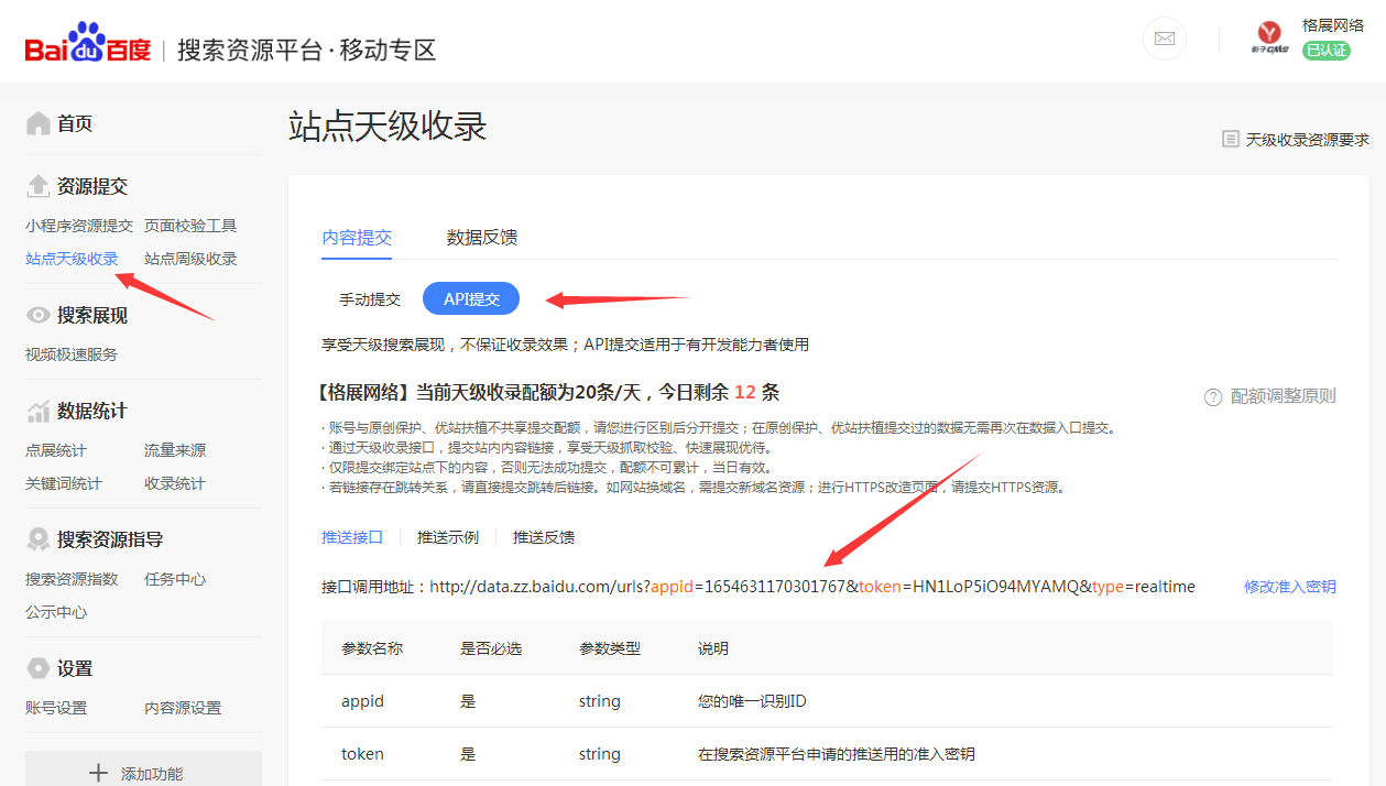 登錄你的百度平臺 https://ziyuan.baidu.com 獲取接口調用地址