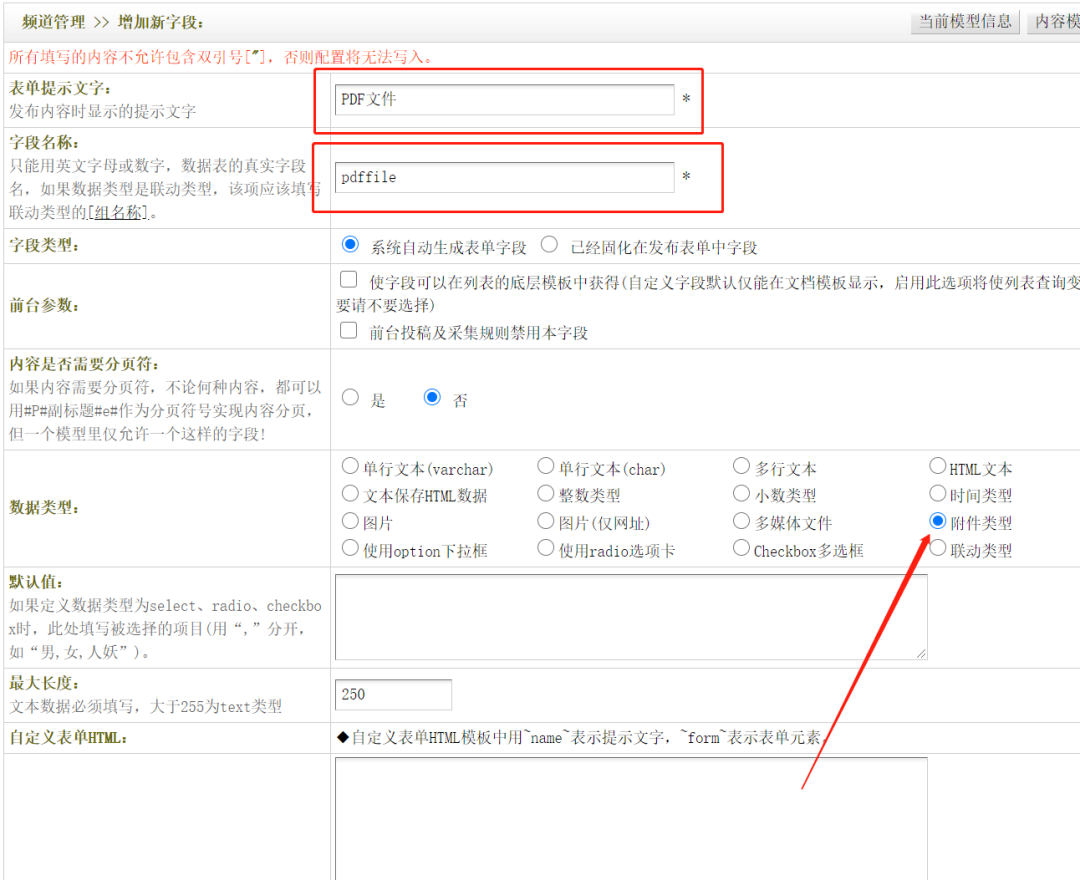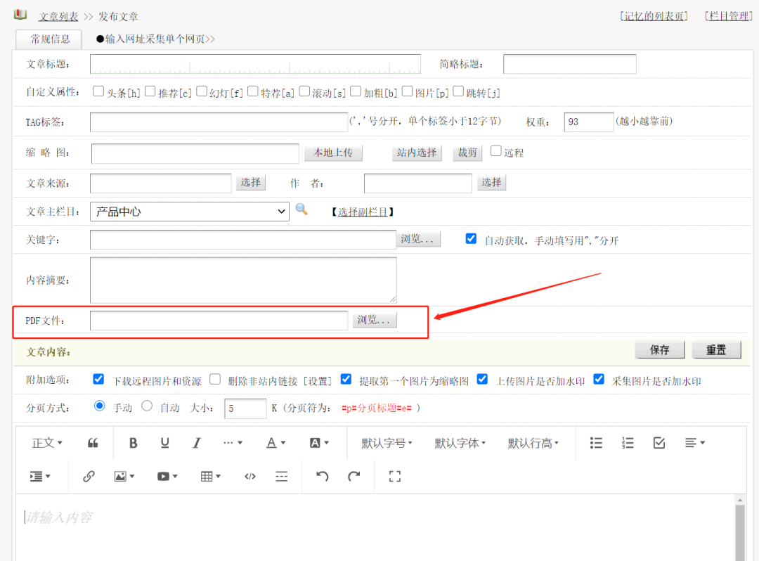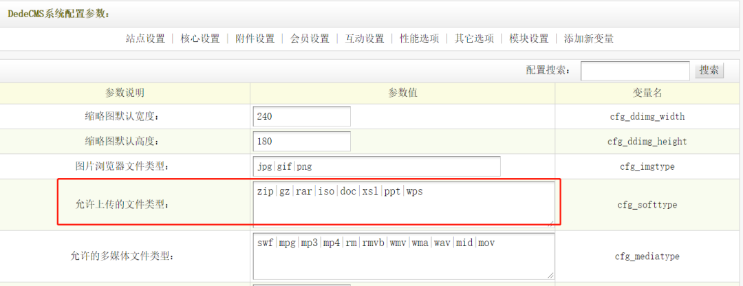 需要說明的是,DedeCMS 默認(rèn)是不允許上傳 pdf 文件的,我們需要到附件設(shè)置里設(shè)置一下。