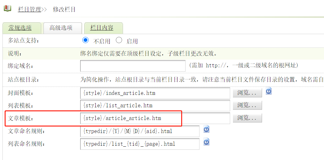 首先,我們找到產(chǎn)品欄目,確認(rèn)一下產(chǎn)品欄目是使用的哪個內(nèi)容模型。一般情況,要么是“普通文章”,要么就是“圖片集”。