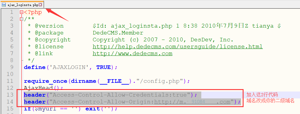 3、在子域名的模板中,有ajax獲取會員登錄狀態數據的地方,文件路徑要使用主域名的文件