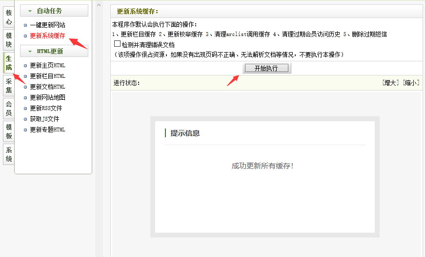 更新系統緩存,靜態的生成,動態的直接查看效果