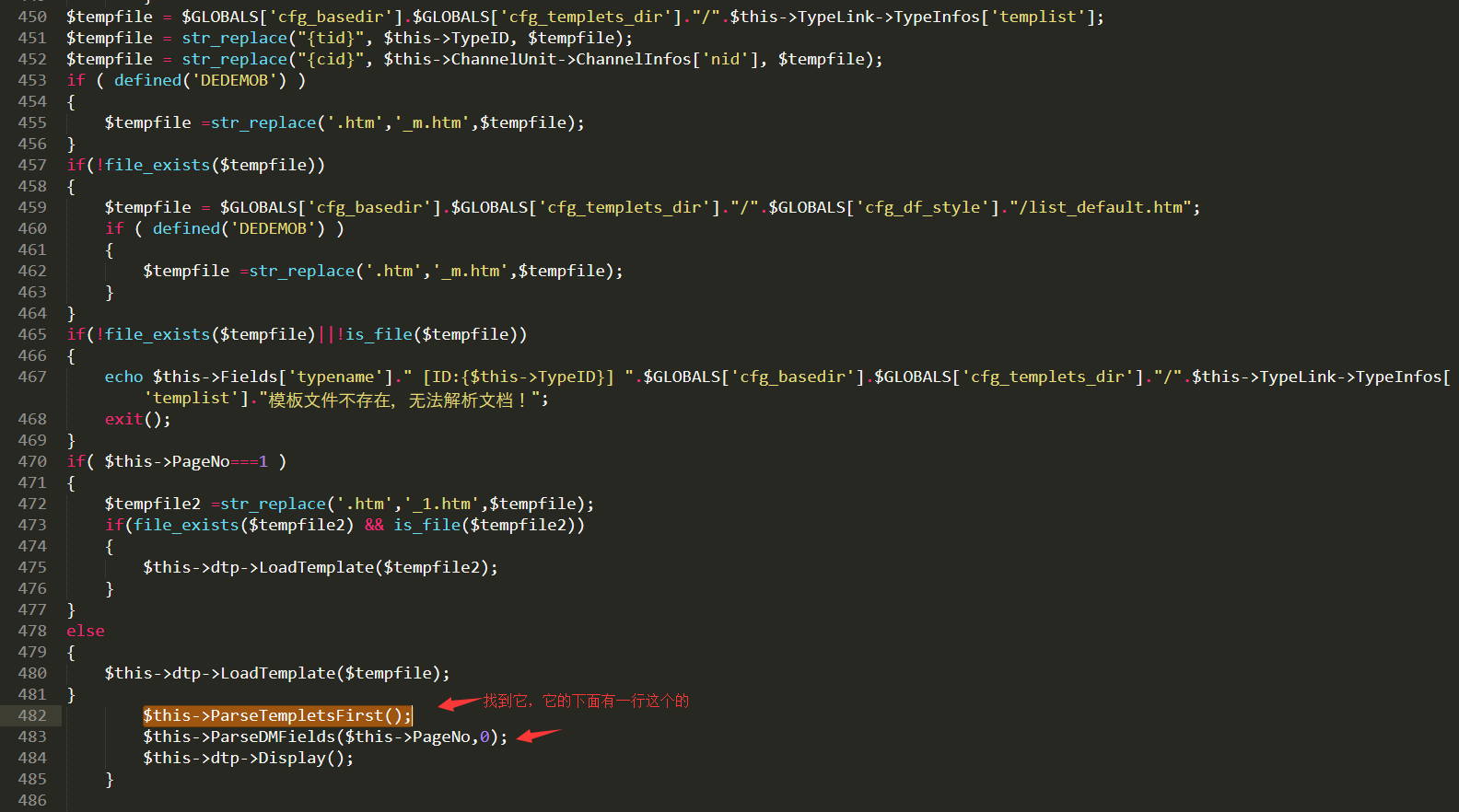 $tempfile = $GLOBALS['cfg_basedir'].$GLOBALS['cfg_templets_dir']."/".$this->TypeLink->TypeInfos['templist'];$tempfile = str_replace("{tid}", $this->TypeID, $tempfile);$tempfile = str_replace("{cid}", $this->ChannelUnit->ChannelInfos['nid'], $tempfile);if ( defined('DEDEMOB') ){$tempfile =str_replace('.htm','_m.htm',$tempfile);}if(!file_exists($tempfile)){$tempfile = $GLOBALS['cfg_basedir'].$GLOBALS['cfg_templets_dir']."/".$GLOBALS['cfg_df_style']."/list_default.htm";if ( defined('DEDEMOB') ){$tempfile =str_replace('.htm','_m.htm',$tempfile);}}if(!file_exists($tempfile)||!is_file($tempfile)){echo $this->Fields['typename']." [ID:{$this->TypeID}] ".$GLOBALS['cfg_basedir'].$GLOBALS['cfg_templets_dir']."/".$this->TypeLink->TypeInfos['templist']."模板文件不存在,無法解析文檔!";exit();}if( $this->PageNo===1 ){$tempfile2 =str_replace('.htm','_1.htm',$tempfile);if(file_exists($tempfile2) && is_file($tempfile2)){$this->dtp->LoadTemplate($tempfile2);}}else{$this->dtp->LoadTemplate($tempfile);}
