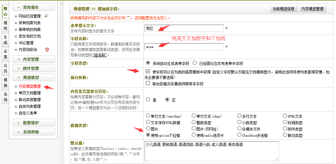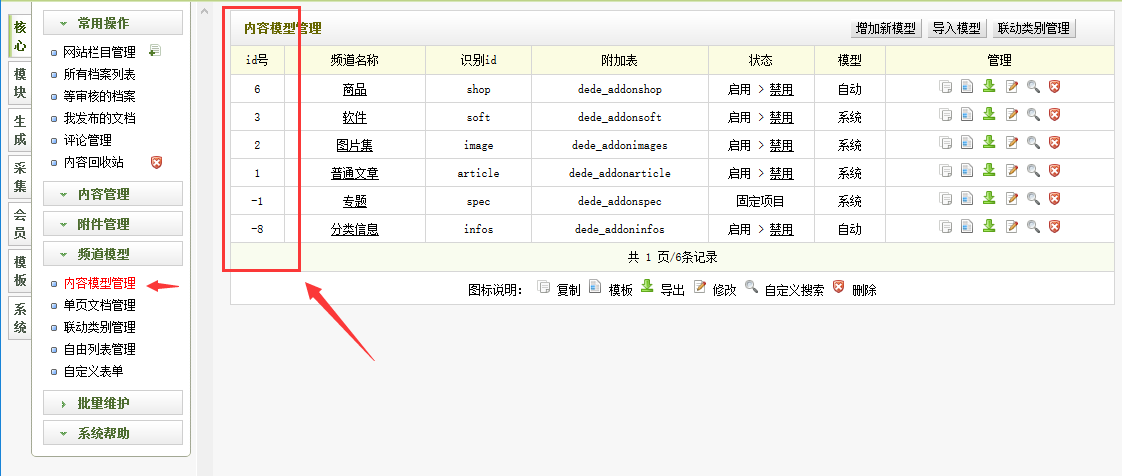 3、后臺 - 核心 - 頻道模型 - 內容模型管理