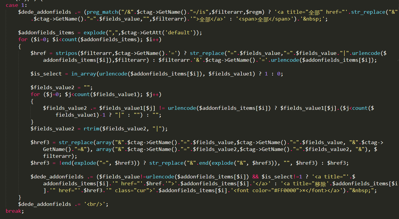 {dede:php}AddFilter(模型ID,類型,"字段1");{/dede:php}