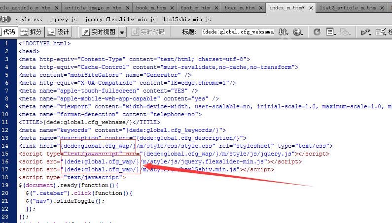 4:手機模板修改CSS、JS等調用路徑,給添加絕對地址,如下圖所示。