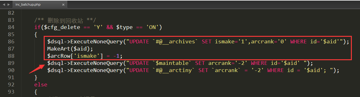 $dsql->ExecuteNoneQuery("UPDATE `$maintable` SET arcrank='-2' WHERE id='$aid' ");