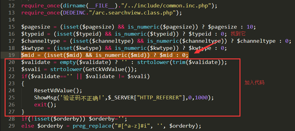 2、/plus/search.php 里面添加驗證碼代碼,找到