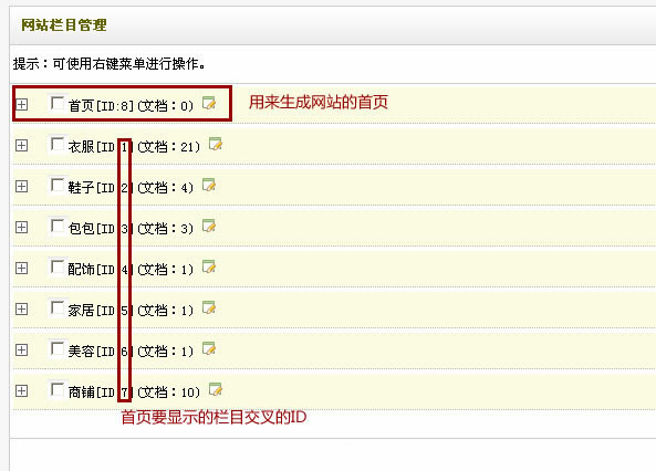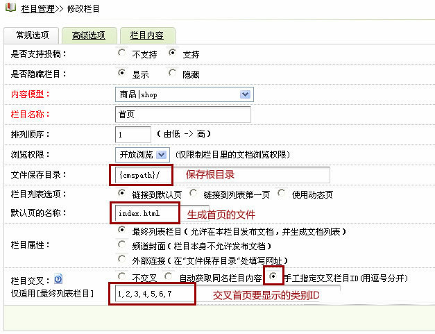 交叉的id只能寫最后一級的欄目id,就是你文章的隸屬欄目id;