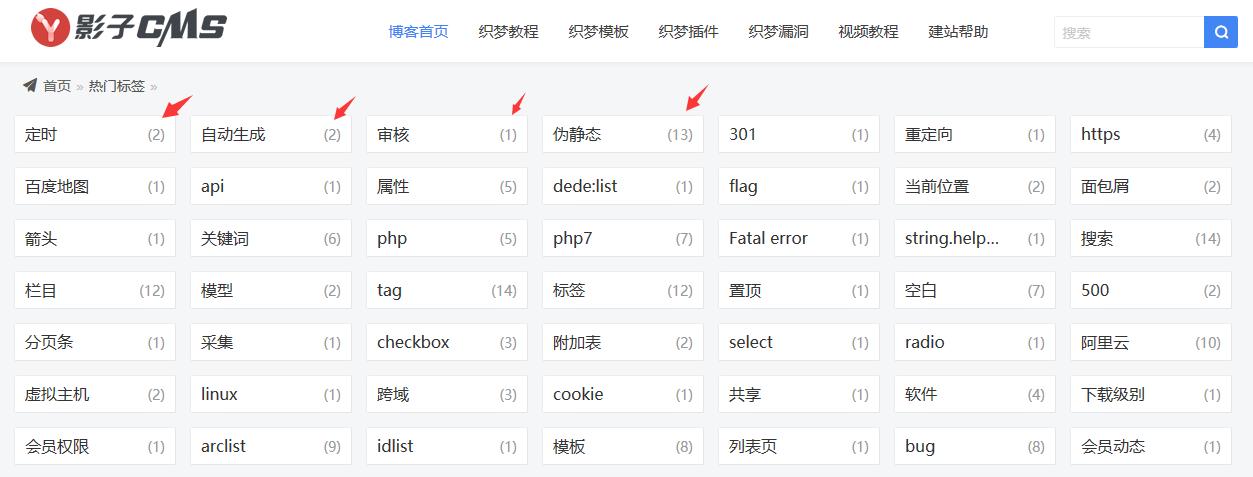 dede:tag標(biāo)簽里調(diào)用每個(gè)標(biāo)簽包含有幾個(gè)所屬文檔數(shù)