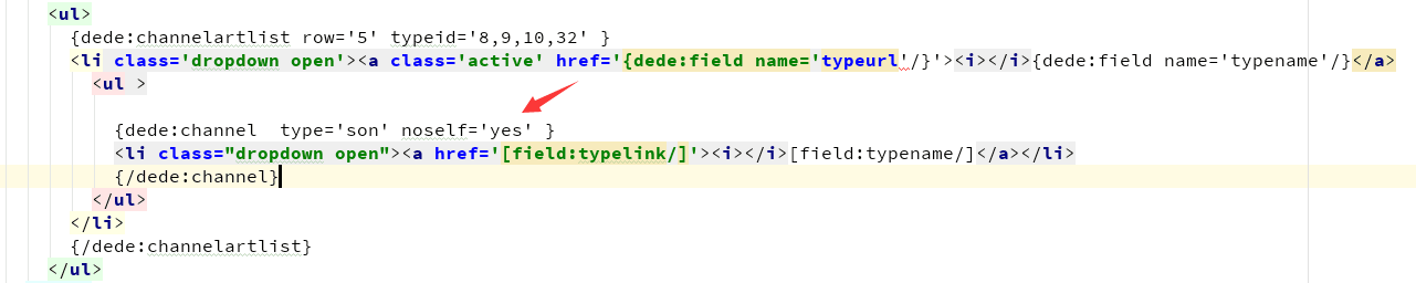 2、dede:channel 標(biāo)簽寫法加入noself=yes