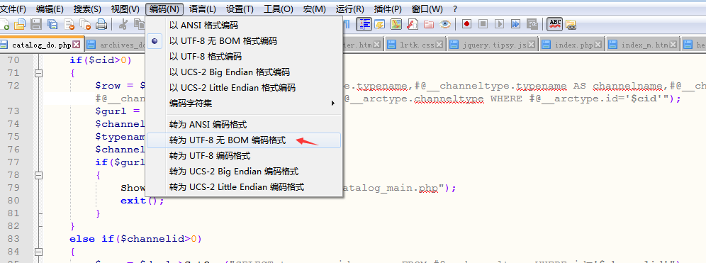 把最近改動過的文件用編程軟件查看和轉碼回UTF-8 無BOM格式,推薦用notepad++來轉,操作方法如下: