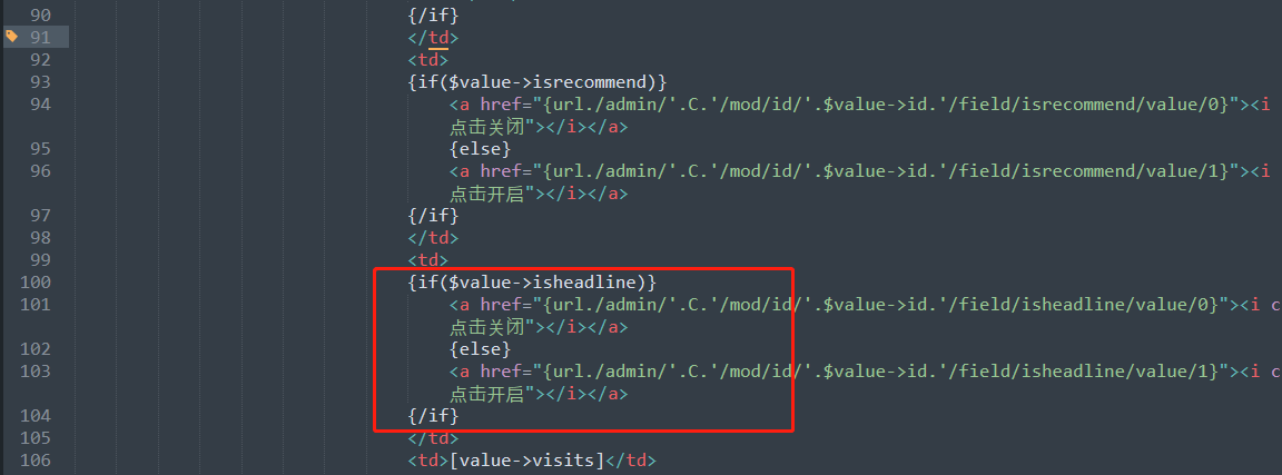 <a href="{url./admin/'.C.'/mod/id/'.$value->id.'/field/isheadline/value/1}"><i class='fa fa-toggle-off' title="點擊開啟"></i></a>