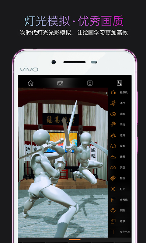 2. 軟件使用云無限制地更新繪畫資源,包括3D可動人物、靜態(tài)虛擬手辦公室、動作庫、動畫庫、手勢庫、材質(zhì)燈光庫、道具主題包、場景主題包等。通過觸摸屏操作調(diào)整娃娃,配合資源庫快速設(shè)定和制定動作,高效完成漫畫草稿、動畫分鏡、影片構(gòu)圖等工作。Pofi照明系統(tǒng)和下一代模型細節(jié)幫助傳統(tǒng)藝術(shù)學(xué)生掌握繪制光和素描的基礎(chǔ)知識。