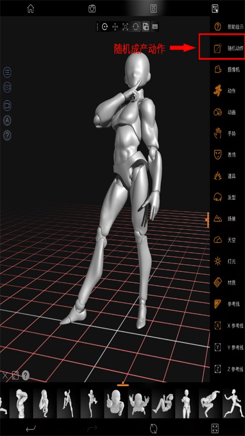 3.還有一個“隨機動作”可以隨機生成人偶“Pose”,作為速寫練習(xí),動態(tài)繪畫練習(xí)。