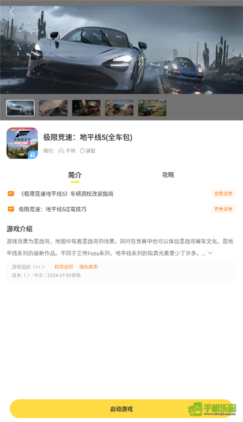 2、進入游戲界面可以看到簡介、攻略以及啟動鍵;