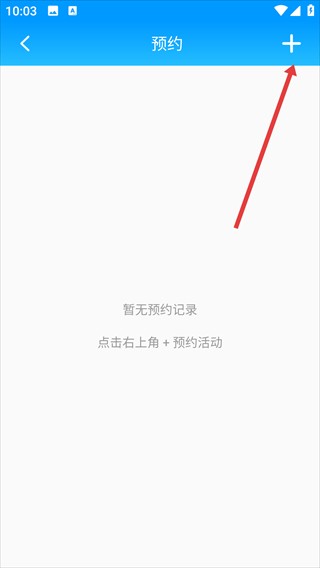 2、進入預約頁面后,點擊右上角的【+】按鈕,即可進入預約活動的信息填寫界面。