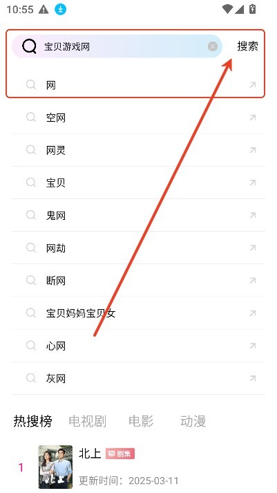 3、或者直接搜索框輸入關鍵詞,點擊搜索,精準篩選影視;