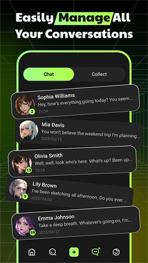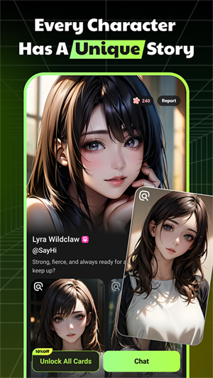 通過對話與互動解鎖角色卡牌,升級卡牌可揭示角色隱藏的背景故事、性格細節與獨家話題,卡牌等級越高,解鎖的則情感越豐富。