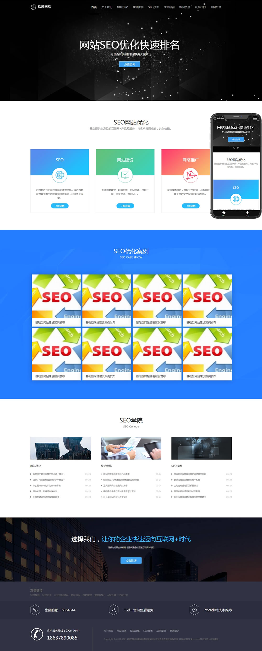 網(wǎng)站優(yōu)化快速排名類科技公司織夢(mèng)模板(自適應(yīng)手機(jī)端)