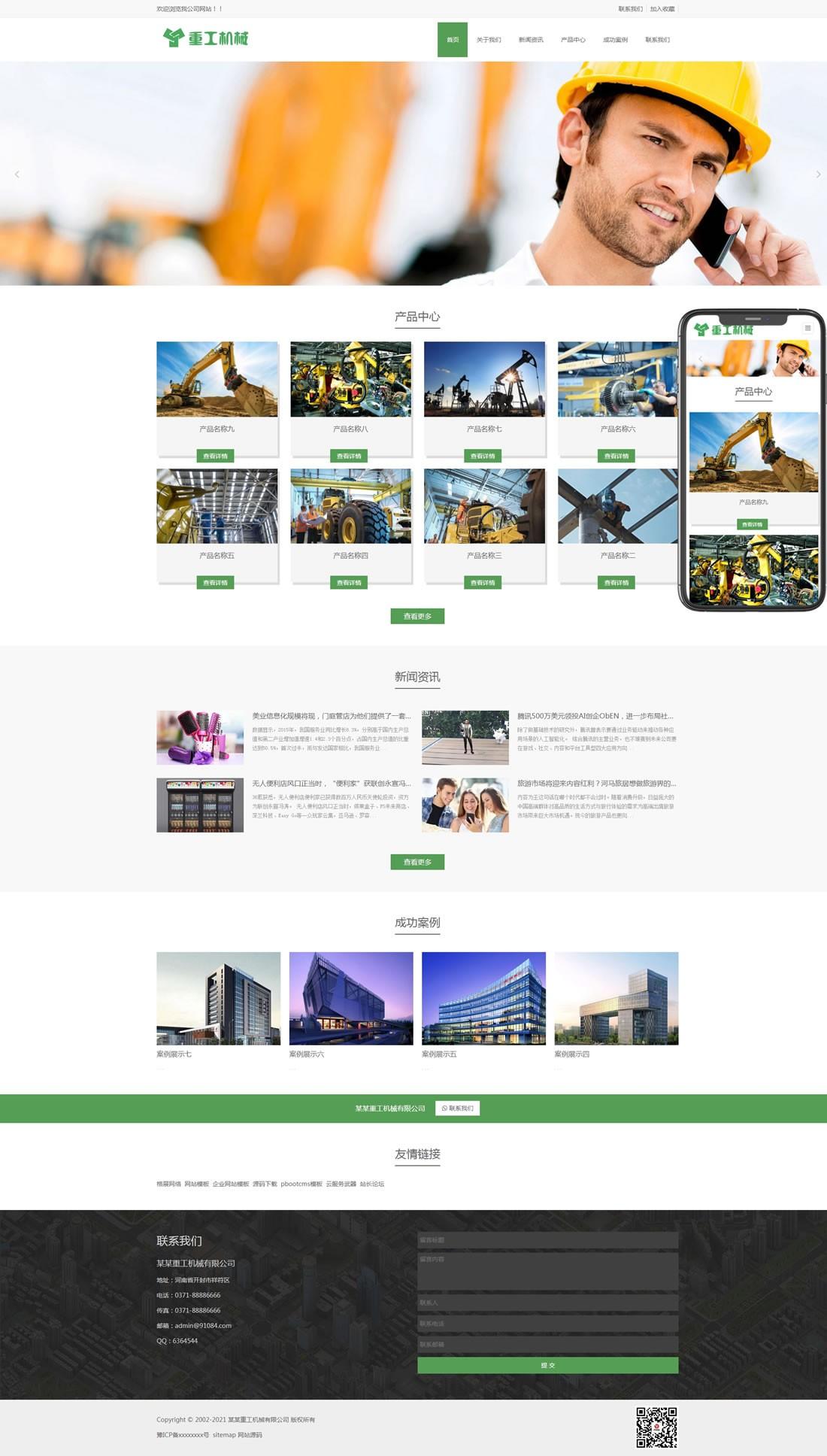 重工機械挖機推土機類網站pbootcms模板(自適應手機端)