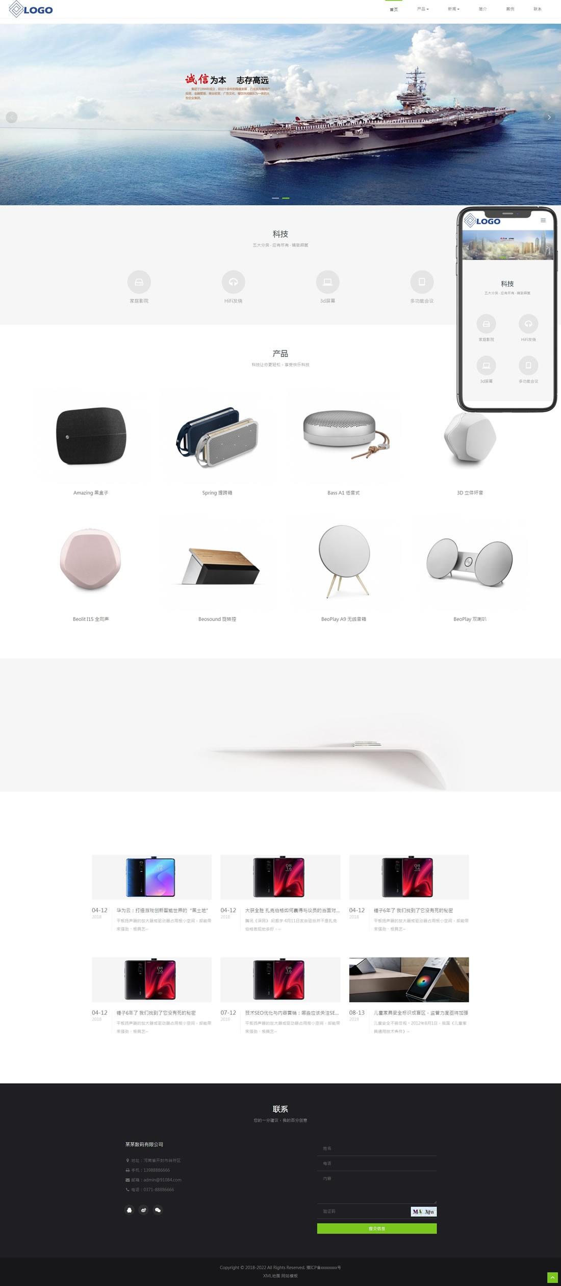 無線音箱數(shù)碼產(chǎn)品類網(wǎng)站pbootcms模板(自適應(yīng)手機(jī)端)