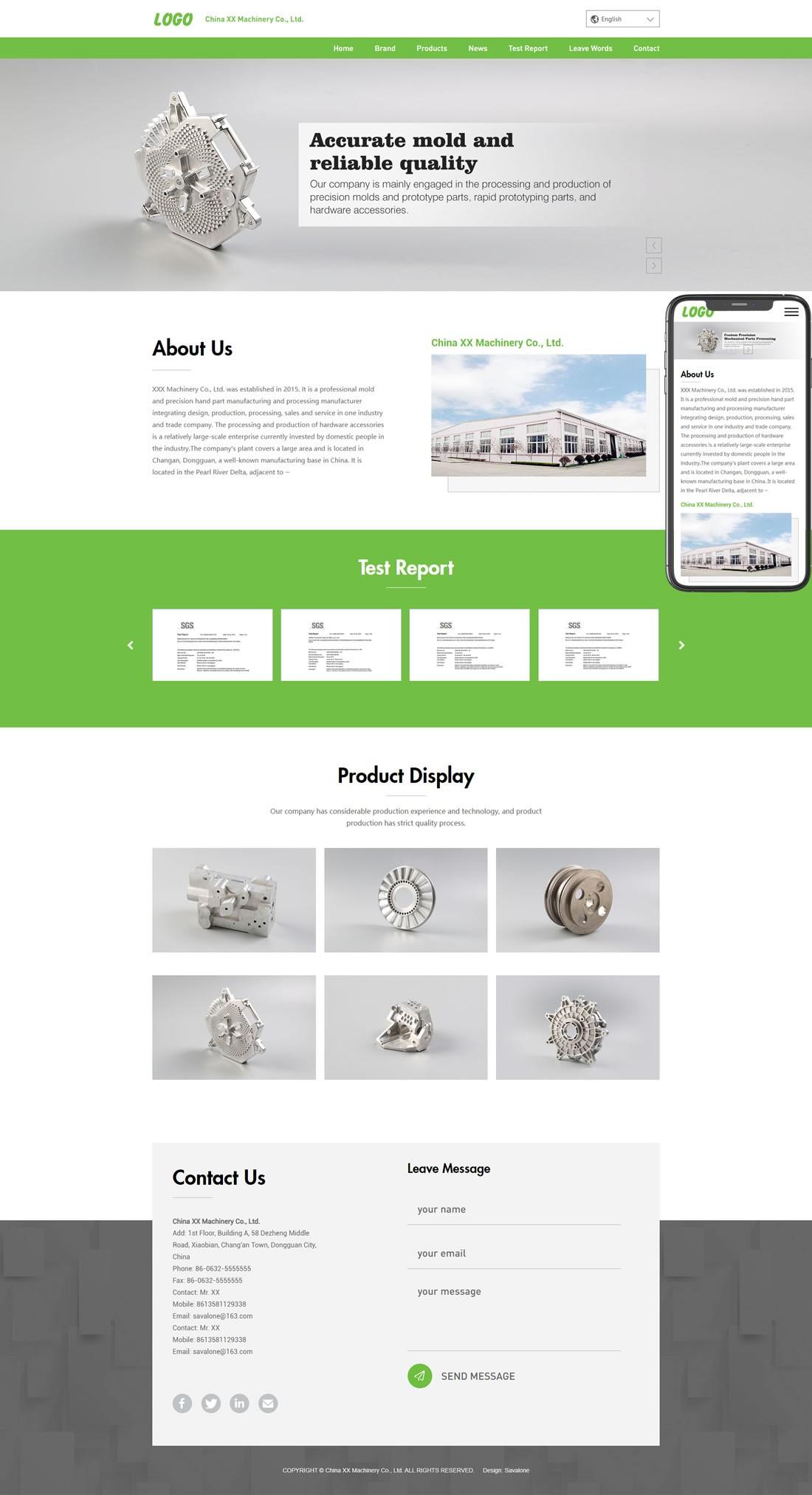 精密模具零件加工類外貿網站pbootcms模板(自適應手機端)