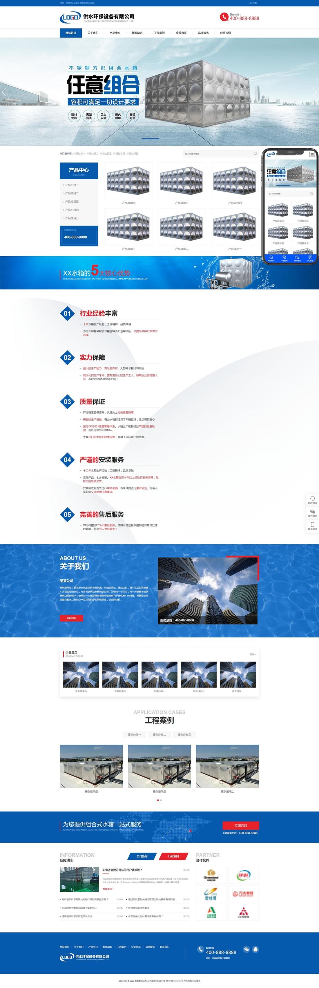 供水環(huán)保設備類網(wǎng)站pbootcms模板(自適應手機端)