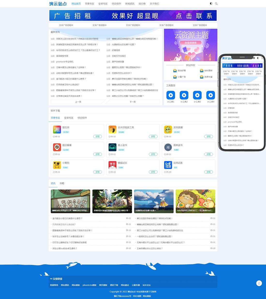 APP應用軟件下載類網站pbootcms模板(自適應手機端)