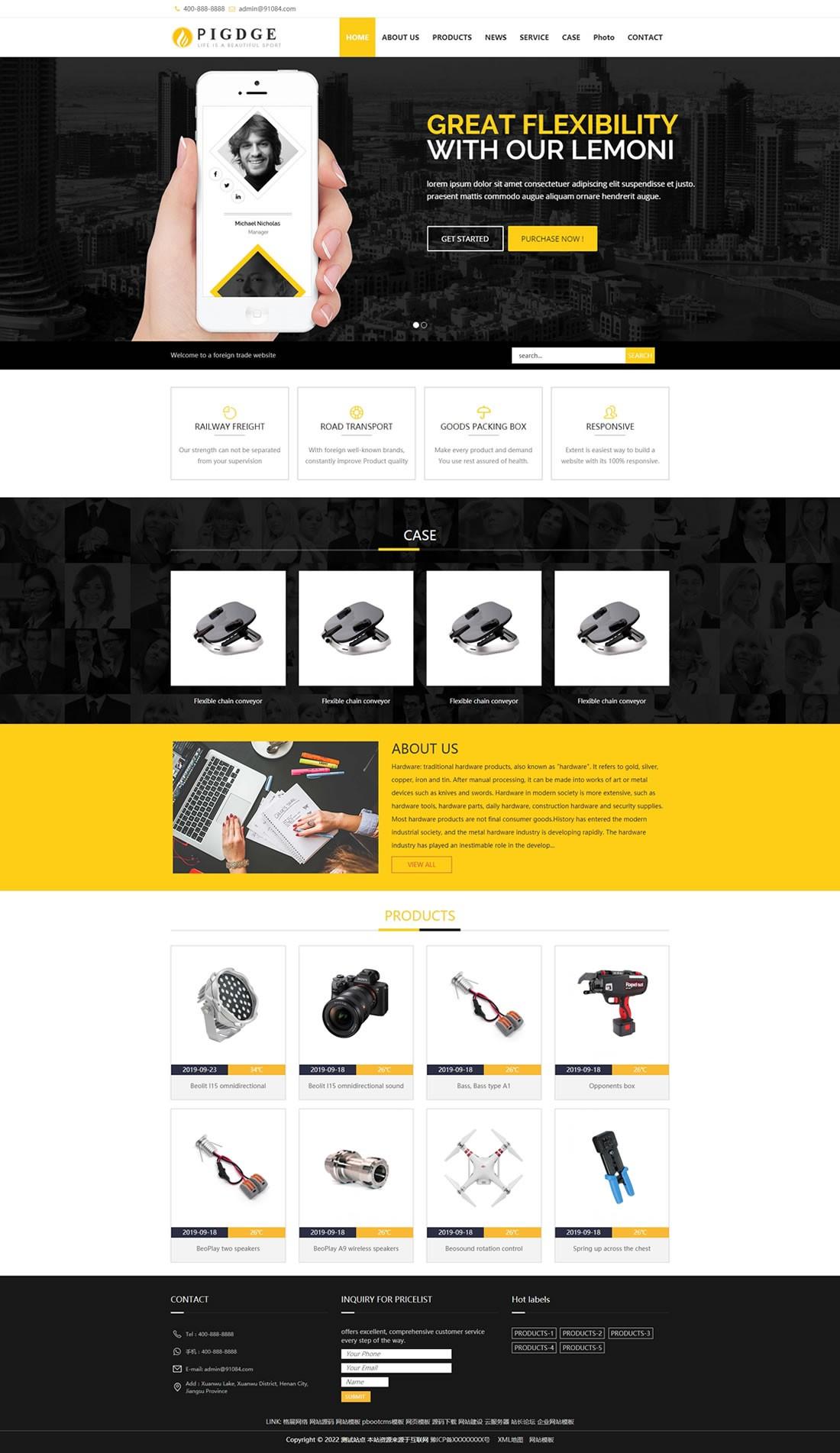 五金電器出口英文外貿類網站pbootcms模板(自適應手機端)