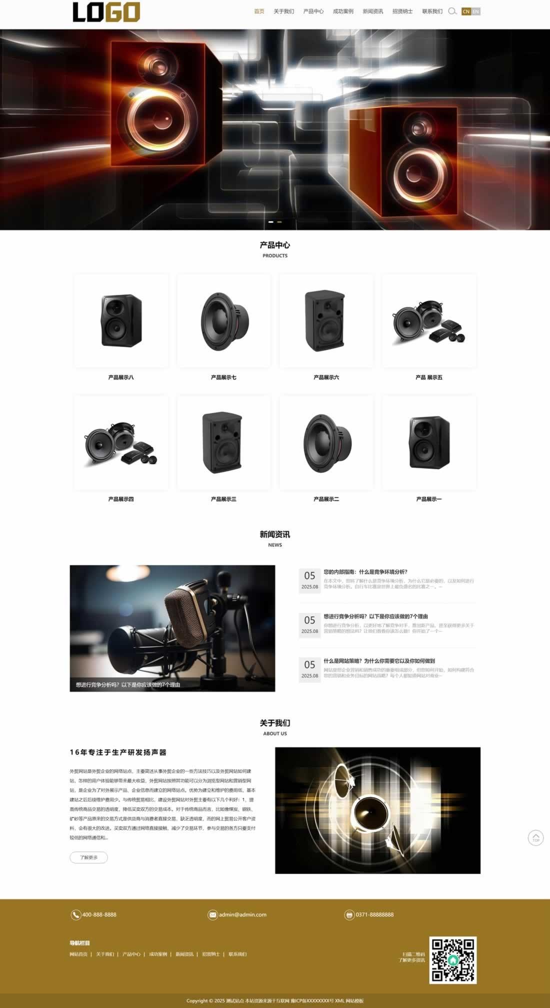 中英雙語電動揚聲器類網站pbootcms模板(自適應手機端)