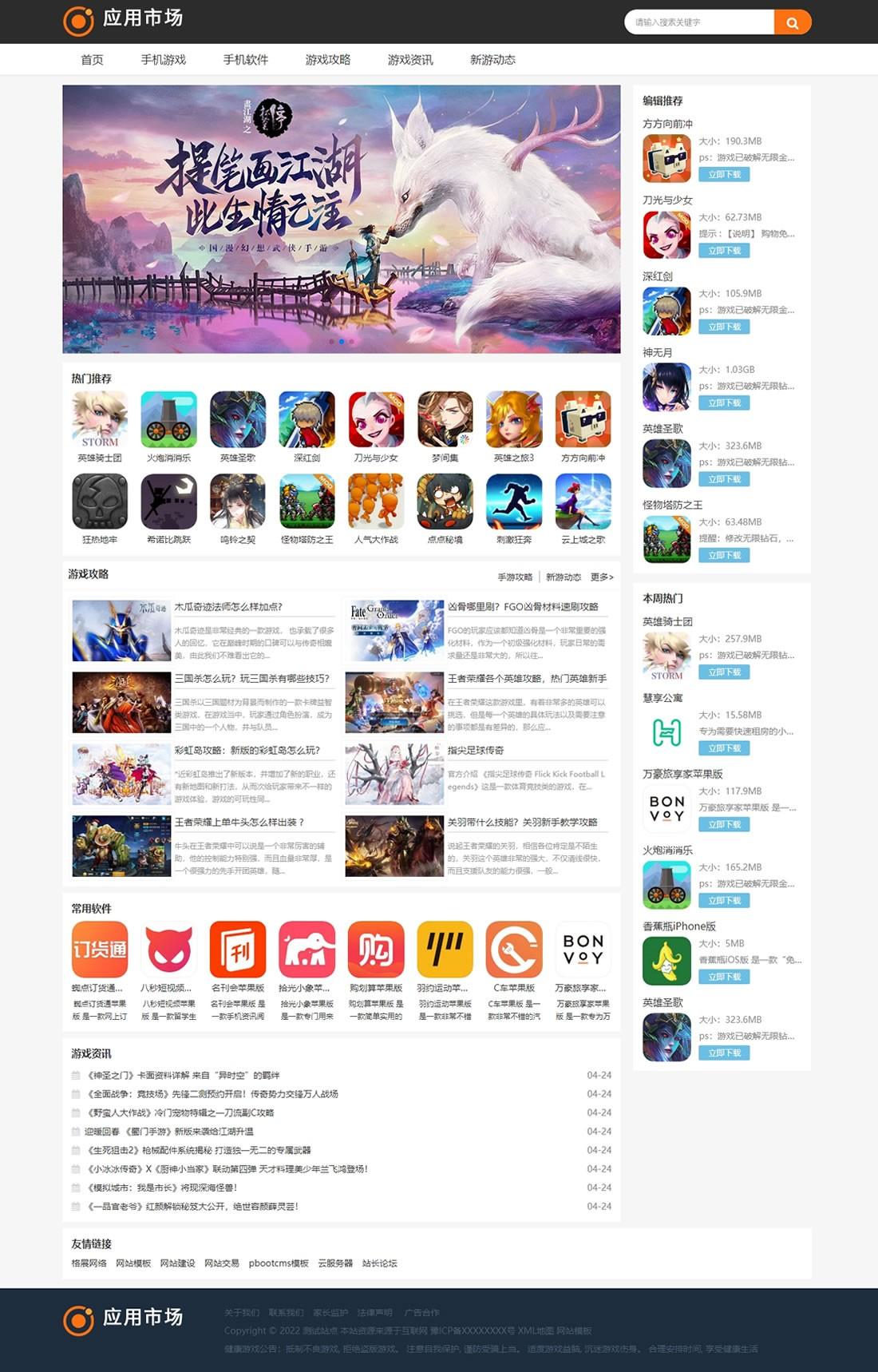 手機軟件手游APP下載類網站pbootcms模板(自適應手機端)