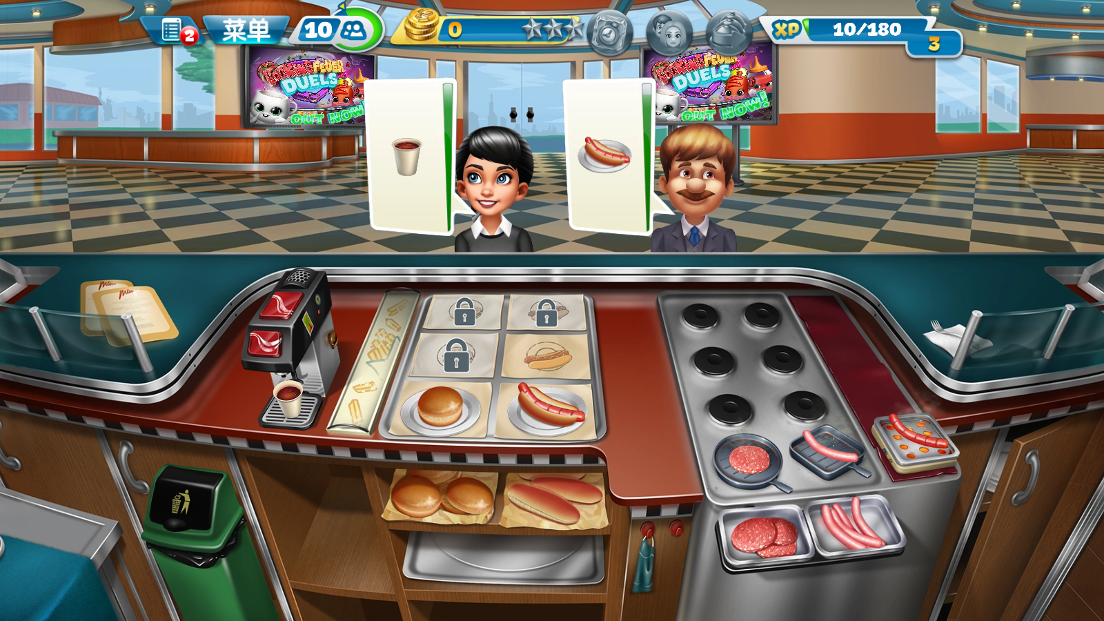 烹飪發燒友,也就是Cooking Fever,是國外知名游戲開發商Nordcurrent打造的一款美食模擬經營類游戲。游戲采用歐美動漫畫風,畫面精致細膩,色彩飽滿絢麗,能給玩家帶來出色的視覺享受。玩法方面,玩家需要按照流程制作美食,操作簡單易懂,但十分考驗手速。游戲內設有豐富多樣的場景關卡,不同場景對應不同的經營階段,制作的食物也各有特色,讓玩家盡情體驗烹飪各類美食的樂趣。