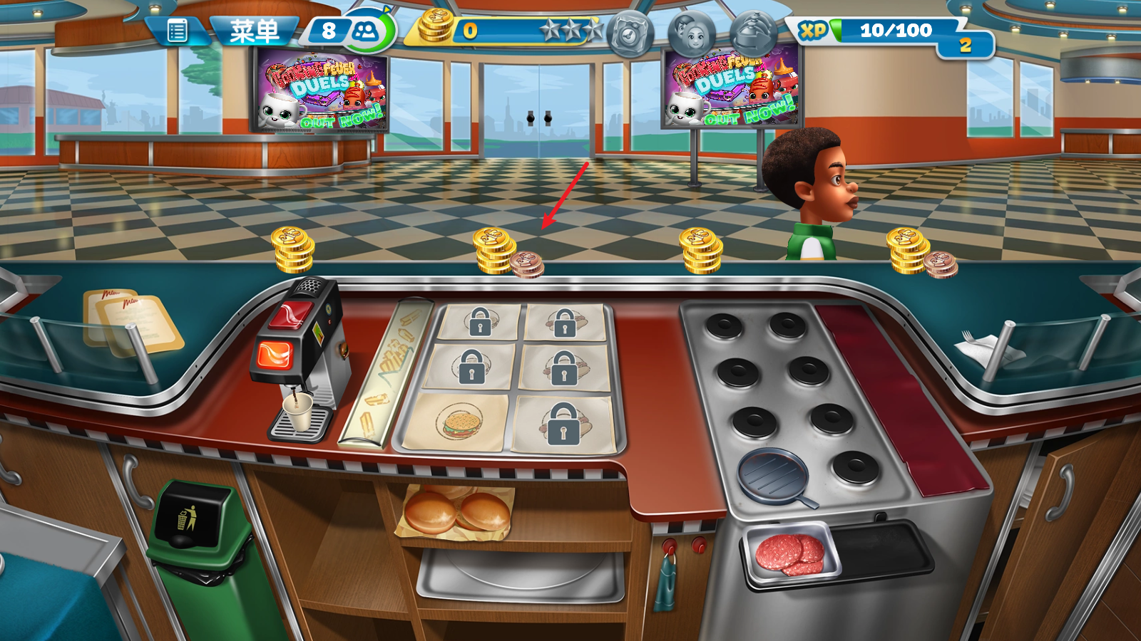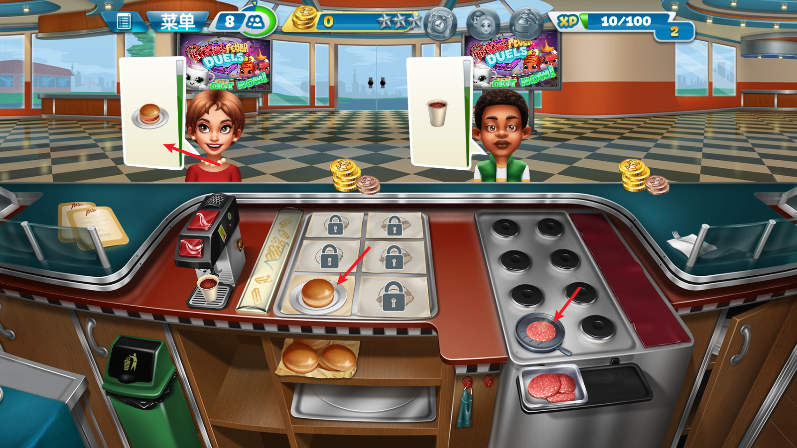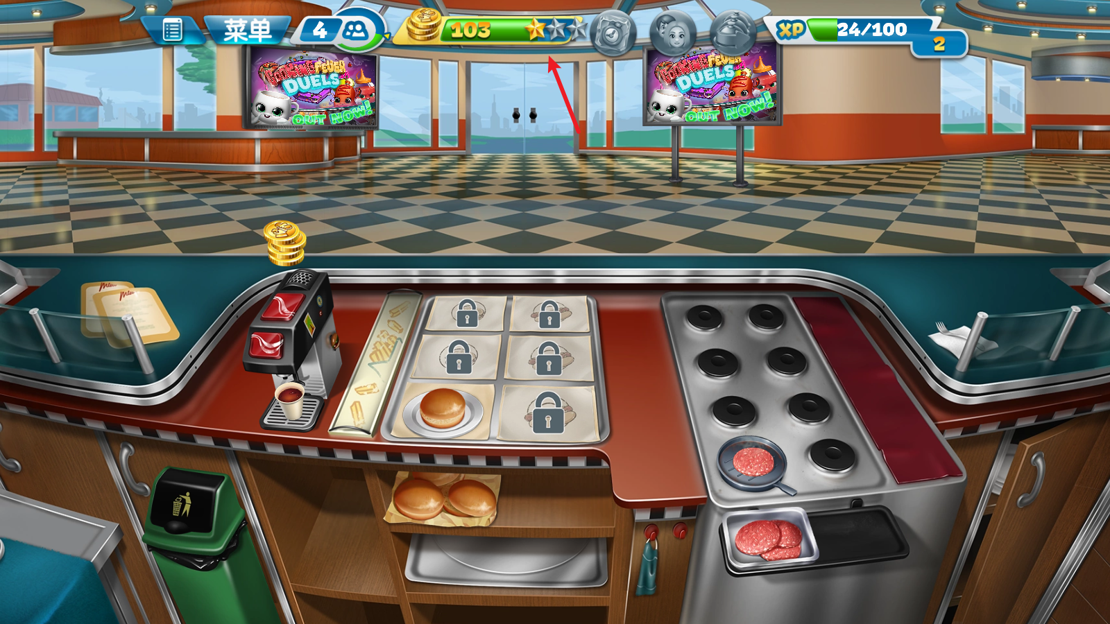 2、我們可以自由的去升級餐廳的內飾和各種廚房用具,以此來提升烹飪的效率,幫助你賺取更多金幣。