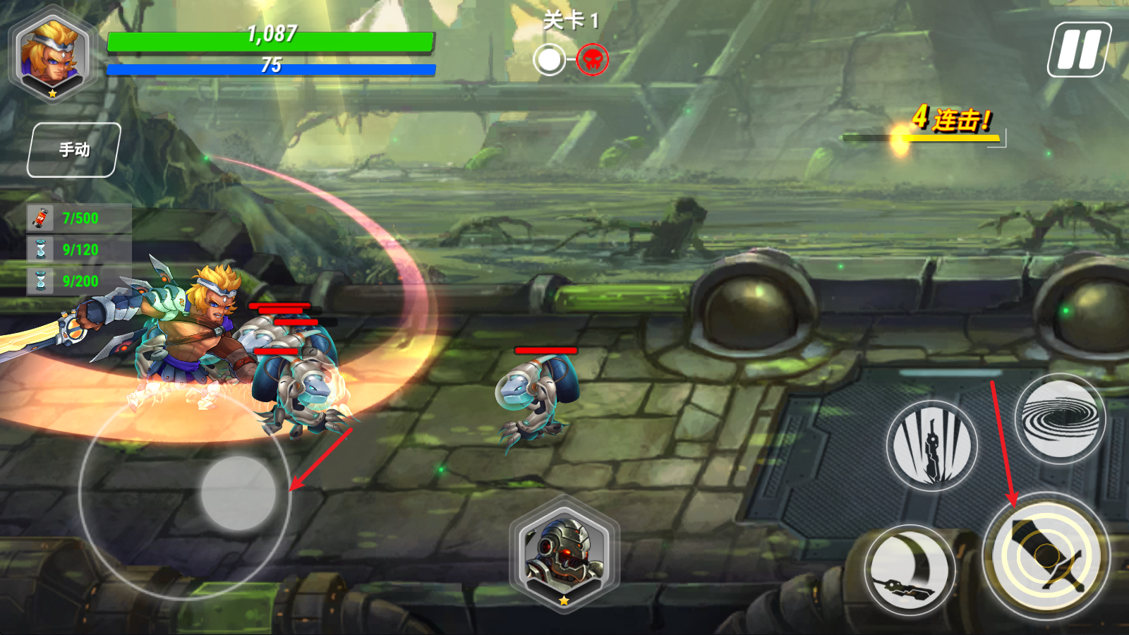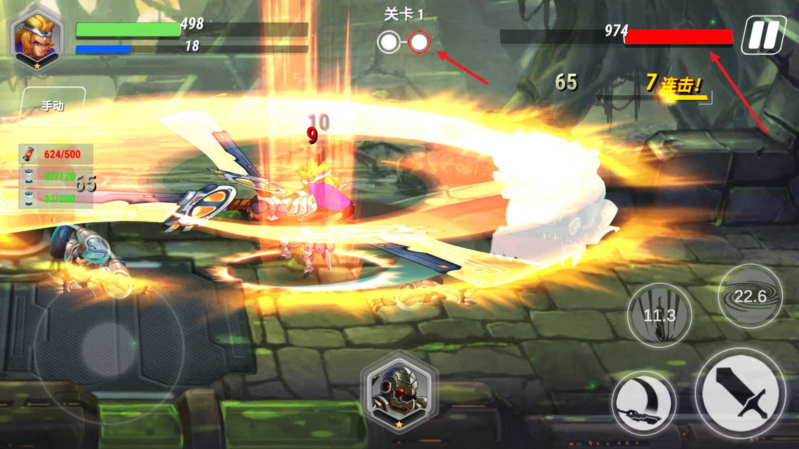 2、隨后選擇關卡即可開始,進入后左側搖桿控制移動,右側的劍則是攻擊。