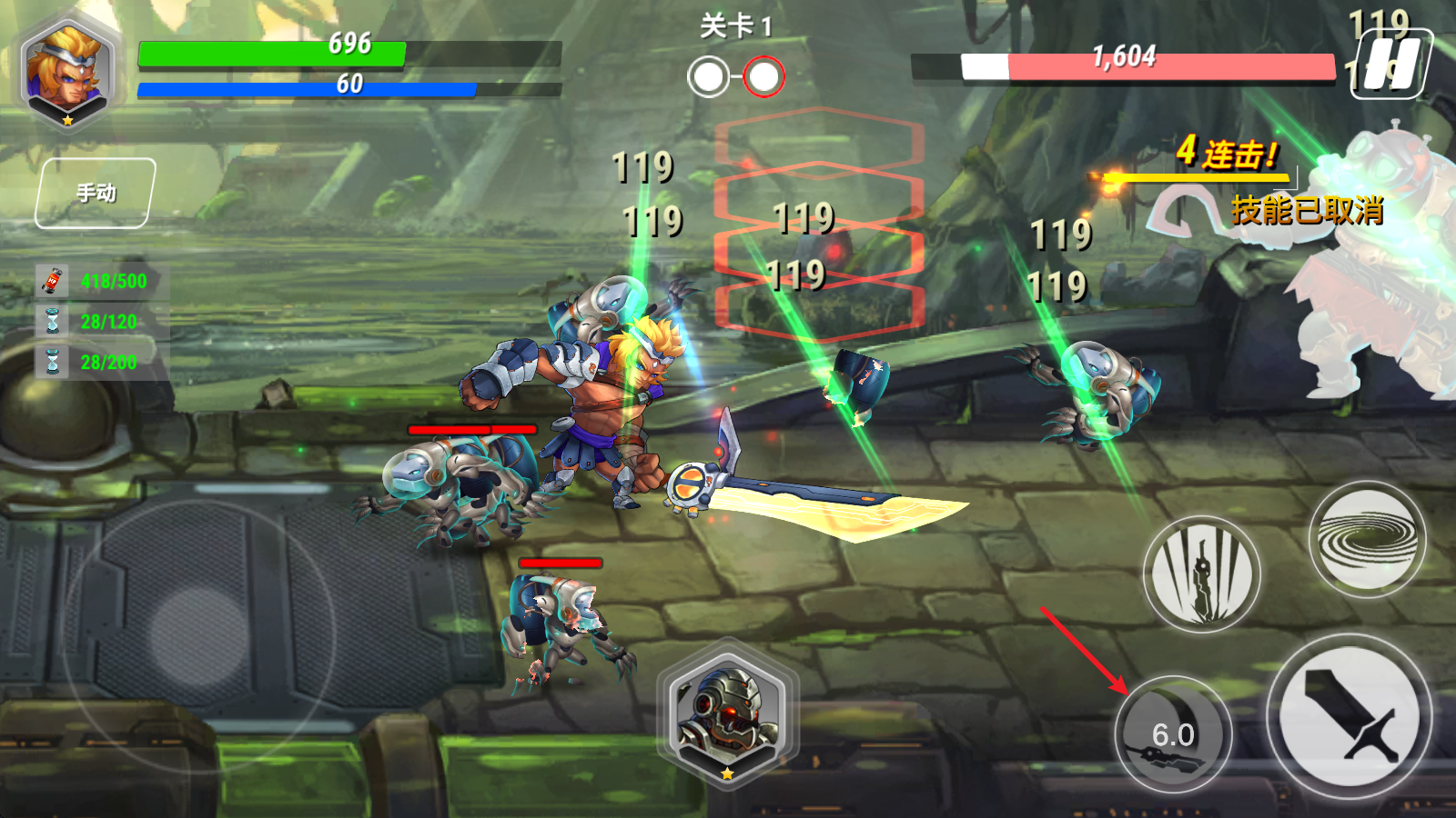 3、攻擊鍵旁邊的就是各種技能,釋放后會進入CD。