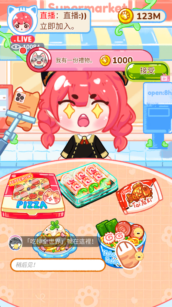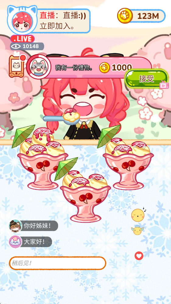 冰淇淋達人正版,是一款和糖葫蘆達人玩法相同的趣味吃播游戲,圍繞制作各類別具一格的冰淇淋展開,為你打造一場精彩的吃播盛宴!在游戲里,玩家將化身美食主播,每天在自己的直播間制作各式各樣的冰淇淋,還會進行吃播展示,給觀眾帶來別樣的體驗!另外,我們也能去超市采購其他食物,像奶茶、意大利面、鯛魚燒等來自全球各地的美食,讓你的直播內容更加豐富!