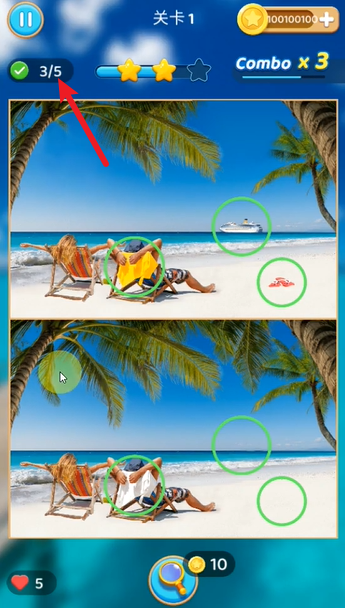 5、通過找尋不同之處來積累星星數。