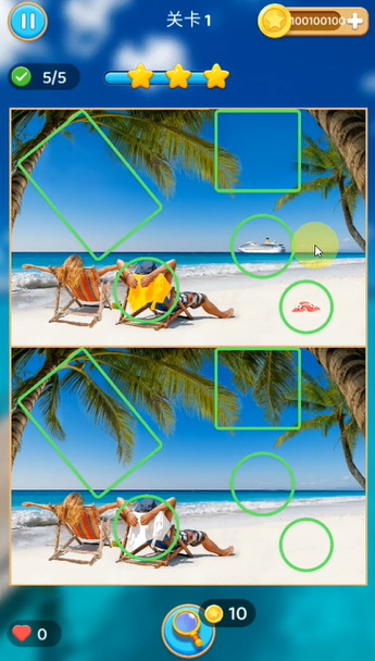 3、這個游戲的玩法很簡單,您只需對比兩張極為相似的圖片,找出所有不同之處并點擊對應的位置,在指定圖片里標記出這些差異點即可。
