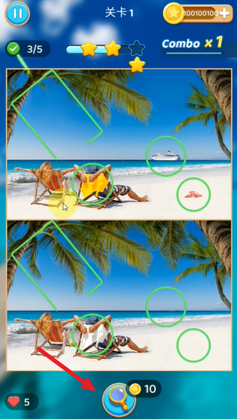 4、要是實在找不到,我們還能花費金幣使用放大鏡道具,幫你找出那些不同的地方。