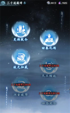 1、三千道藏碑乃宗門重中之重,既是抵御寂滅入侵的防御結界,更是解鎖其他功能建筑、提升建筑等級上限的關鍵。它還能發布特殊敕令,諸如短時間強化資源建筑生產效率、即刻治愈所有受傷弟子。所以前期盡量優先提升三千道藏碑的等級,可以為你帶來非常多的幫助。