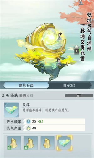 3、九天仙脈、靈泉葫、菩提樹這三類建筑同屬核心資源建筑,建議優先進行升級。其中,九天仙脈是宗門靈氣的主要供給來源,能夠持續產出靈氣。靈氣的獲取途徑較為有限,除了通過戰斗闖關獲得外,就只有九天仙脈可以持續產出,對其進行升級能夠提高靈氣的產出頻率和產量,從而為宗門提供源源不斷的靈氣支持。靈泉葫則可以持續產出靈泉,靈泉是建筑建造、升級以及仙兵招募過程中不可或缺的資源,具有很高的價值。菩提樹專門產出靈木,而靈木同樣是建筑建造、升級與仙兵招募的關鍵資源。